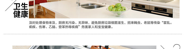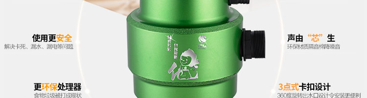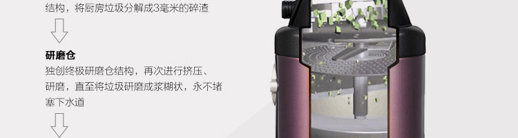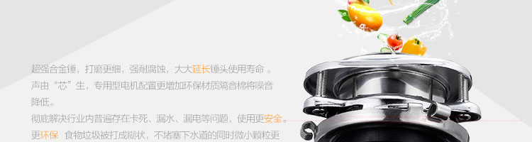 DCLQ38-廚房垃圾處理器,該機擁有獨特的粉碎功能,使所有垃圾研磨吸毒真正低于3毫米,用戶不用為管道堵塞而煩惱,粉碎后粗、細兩種垃圾通過濾孔自動分離,成漿狀的細垃圾隨水流流入管道,粗的垃圾會稍停留在研磨倉繼續粉碎,形成粉末狀后,再隨水流流入管道,客戶可以放心使用。