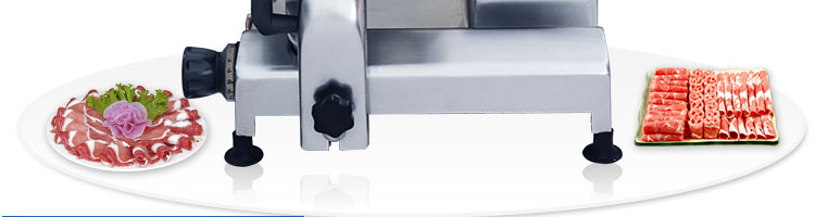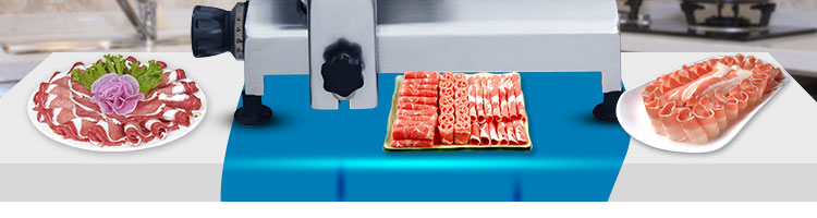 臺式全自動切片機,適合切無骨肉類和其他類似榨菜帶有彈性的食物,把原材料肉切成肉片,并可自動成卷狀。可切牛肉片、羊肉片等