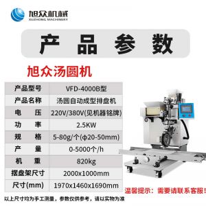 VFD-4000B湯圓機,定量準確自動搓圓排盤成型大小均勻口感柔滑??芍谱鞲魇桨W食品,如湯圓、芝麻球、豆沙包、南瓜餅、奶黃包等